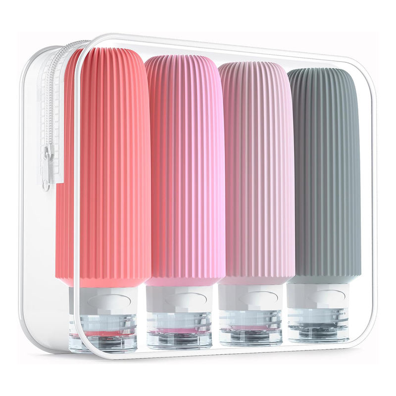 Este juego de botellas de viaje de silicona de gran capacidad de 177 ml presenta un diseño antideslizante con nervaduras verticales, que ofrece el doble de almacenamiento que las botellas de viaje estándar.